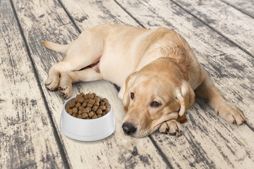 Kommandos. Intelligenzspielzeug fordert den Welpen geistig heraus.